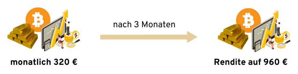 Bei anderen Anlagewerten baut sich der Hebeleffekt deutlich langsamer auf. Nach 3 Monaten mit gleicher Zuzahlung beträgt die Investition 960 €.