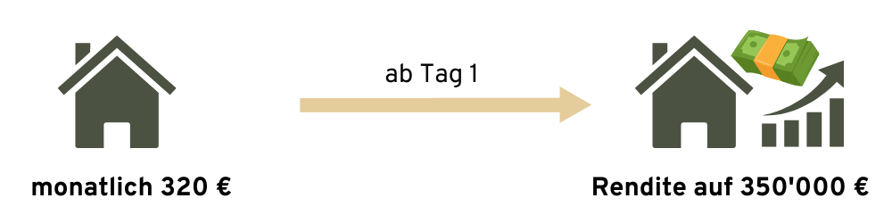 - Mit einem monatlichen Investment von nur 320 Euro hebeln Sie den gesamten Wert der Immobilie ab dem ersten Tag