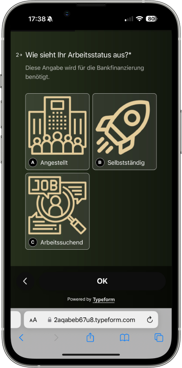Während unseres Beratungsgesprächs finden wir heraus, welche individuellen Anforderungen Ihre Immobilie mitbringen muss und ob eine Finanzierung sinnvoll ist.